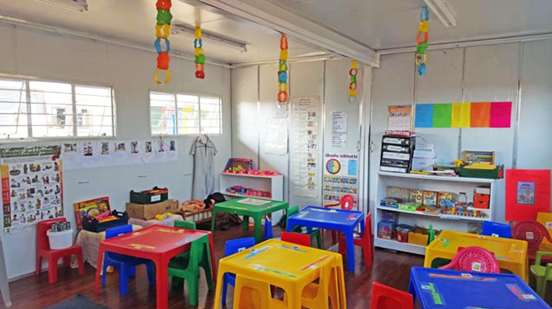 Although converting a shipping container into a school building involves numerous procedures. Yet the optimum space is created by shedding off the side walls of the container and reinforcing it from the sections which have been cut off!